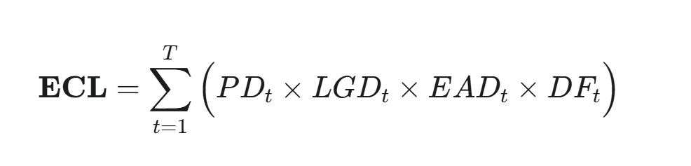 The final Expected Credit Loss (ECL) is calculated as the sum of discounted expected losses over the appropriate time horizon: